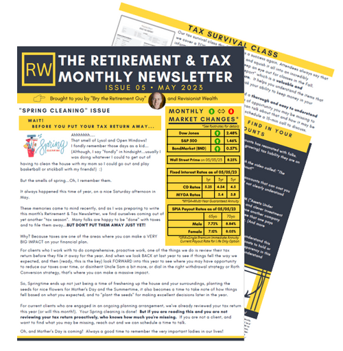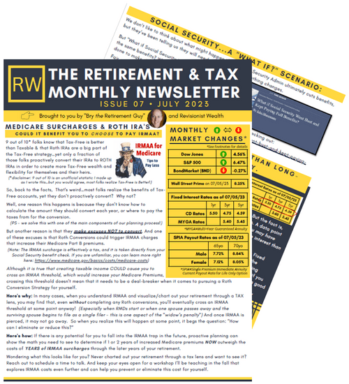 Each month, on the 7th of the month, we'll post and email an updated Retirement & Tax Monthly Newsletter.